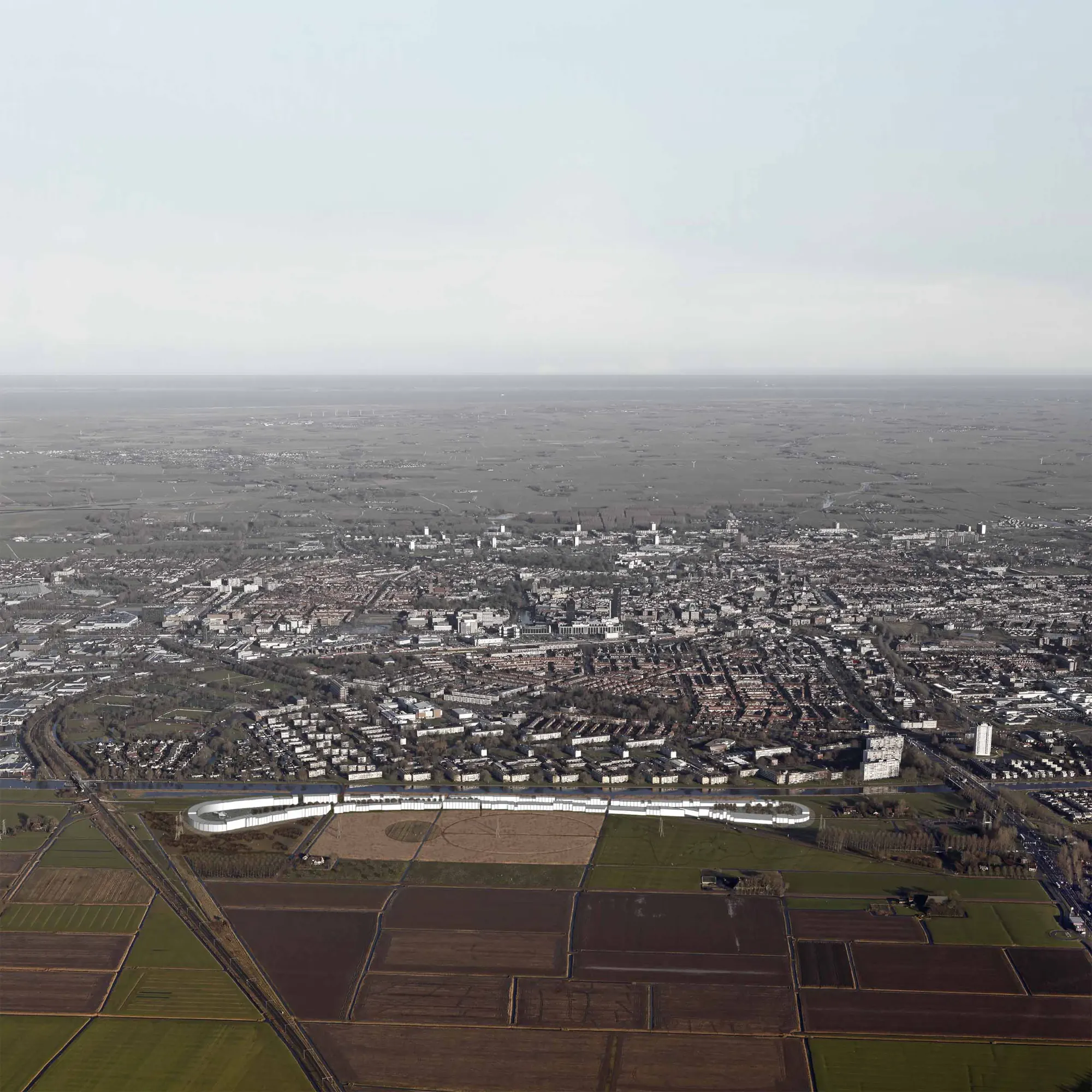 Parallel worlds. Europan 11 competition, master plan on the border of the city and the flat rural landscape, Leeuwarden, NL. International competition in collaboration with Atelier 010 .